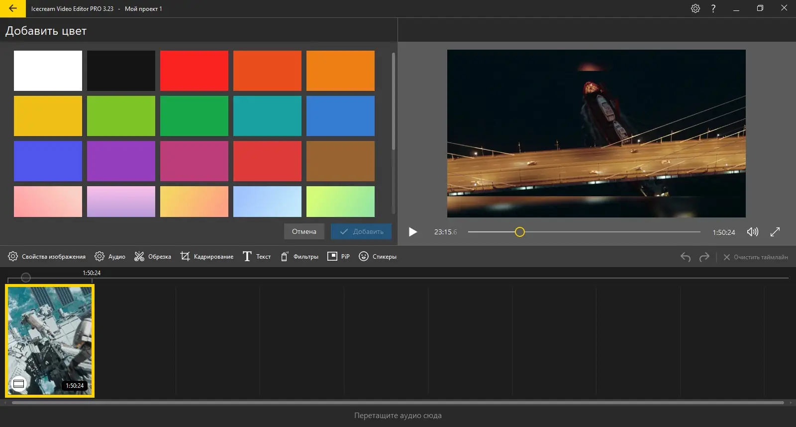 Icecream Video Editor разработан для пользователей, которым нужен простой, но эффективный инструмент для создания и редактирования видео. Программа поддерживает широкий спектр форматов, включая MP4, AVI, MOV, WEBM, а также изображения в форматах JPG и PNG. Работа ведётся на таймлайне, где можно свободно размещать видеоклипы, фото и аудиофайлы, выстраивая повествование в нужной последовательности.