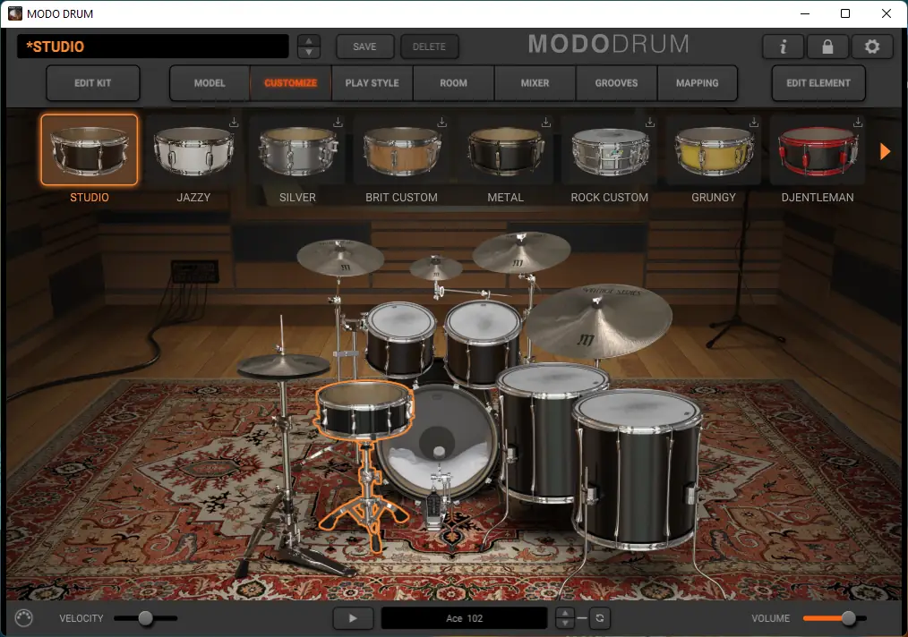 - 13 предустановленных барабанных комплектов, включая Silver, Brit Custom и Metal