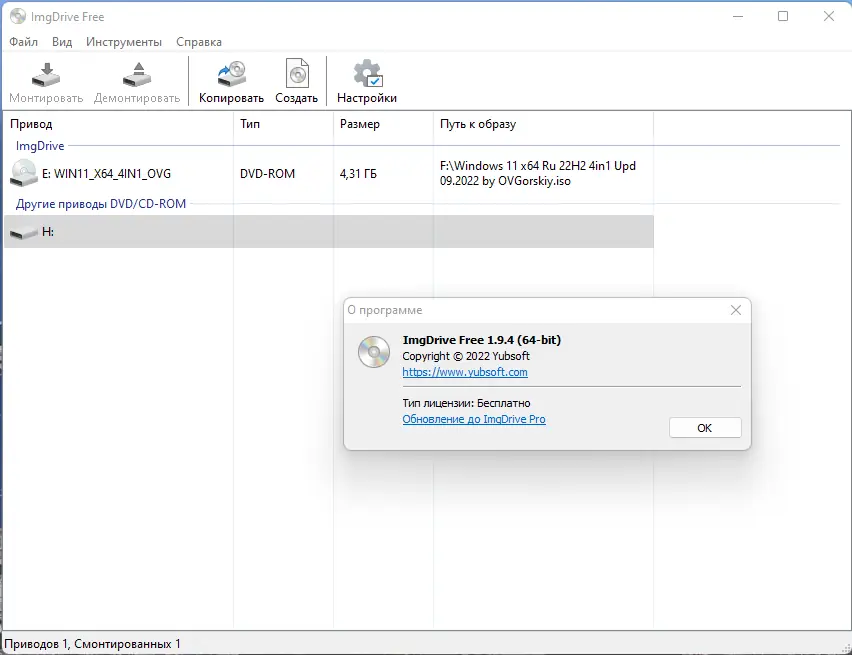 ImgDrive представляет собой эффективное решение для пользователей, которым необходимо регулярно работать с образами дисков. Он поддерживает до семи виртуальных приводов одновременно, что позволяет открывать несколько образов без переключений и потери производительности. Программа совместима с операционными системами Windows от XP до Windows 11, как в 32-, так и в 64-битных версиях, обеспечивая стабильную работу на различных конфигурациях. Установка не требует перезагрузки, а портативная версия позволяет запускать приложение с флешки без инсталляции.