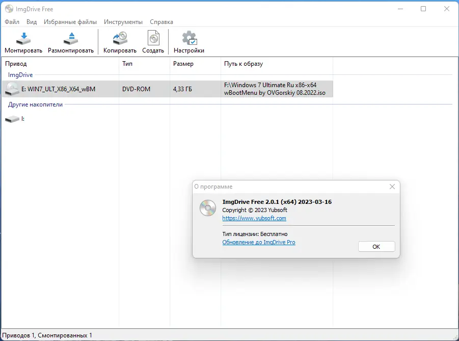 ImgDrive совместим с различными типами образов и поддерживает как стандартные, так и редкие форматы, обеспечивая универсальность в работе.