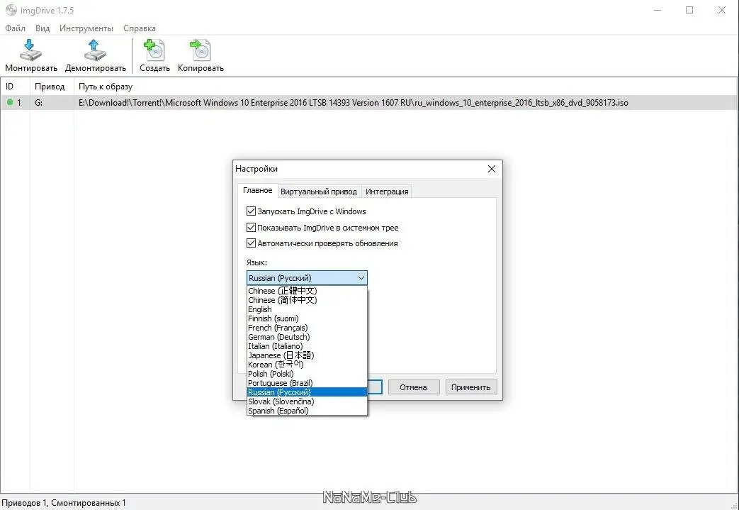 - Интеграция в контекстное меню Windows для быстрого доступа к функциям монтирования.