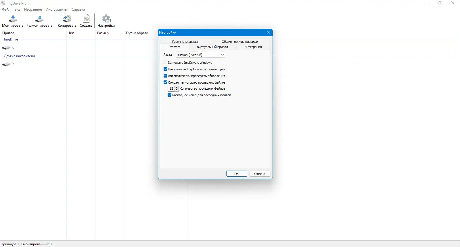 - Интеграция с контекстным меню Windows для быстрого доступа к функциям монтирования.
