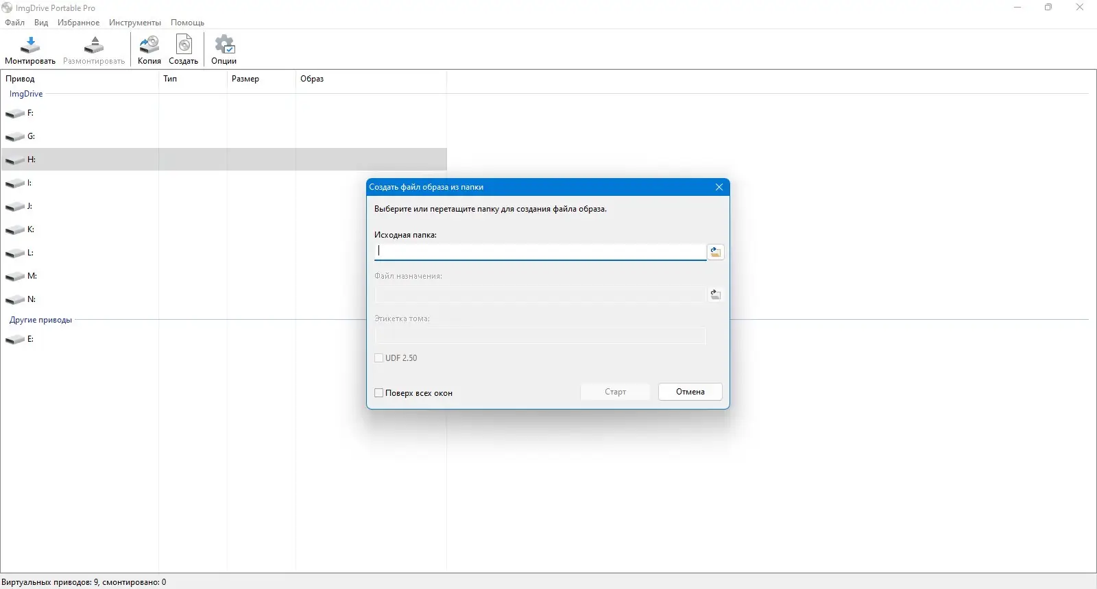 - Возможность монтировать папку как виртуальный DVD или Blu-ray диск