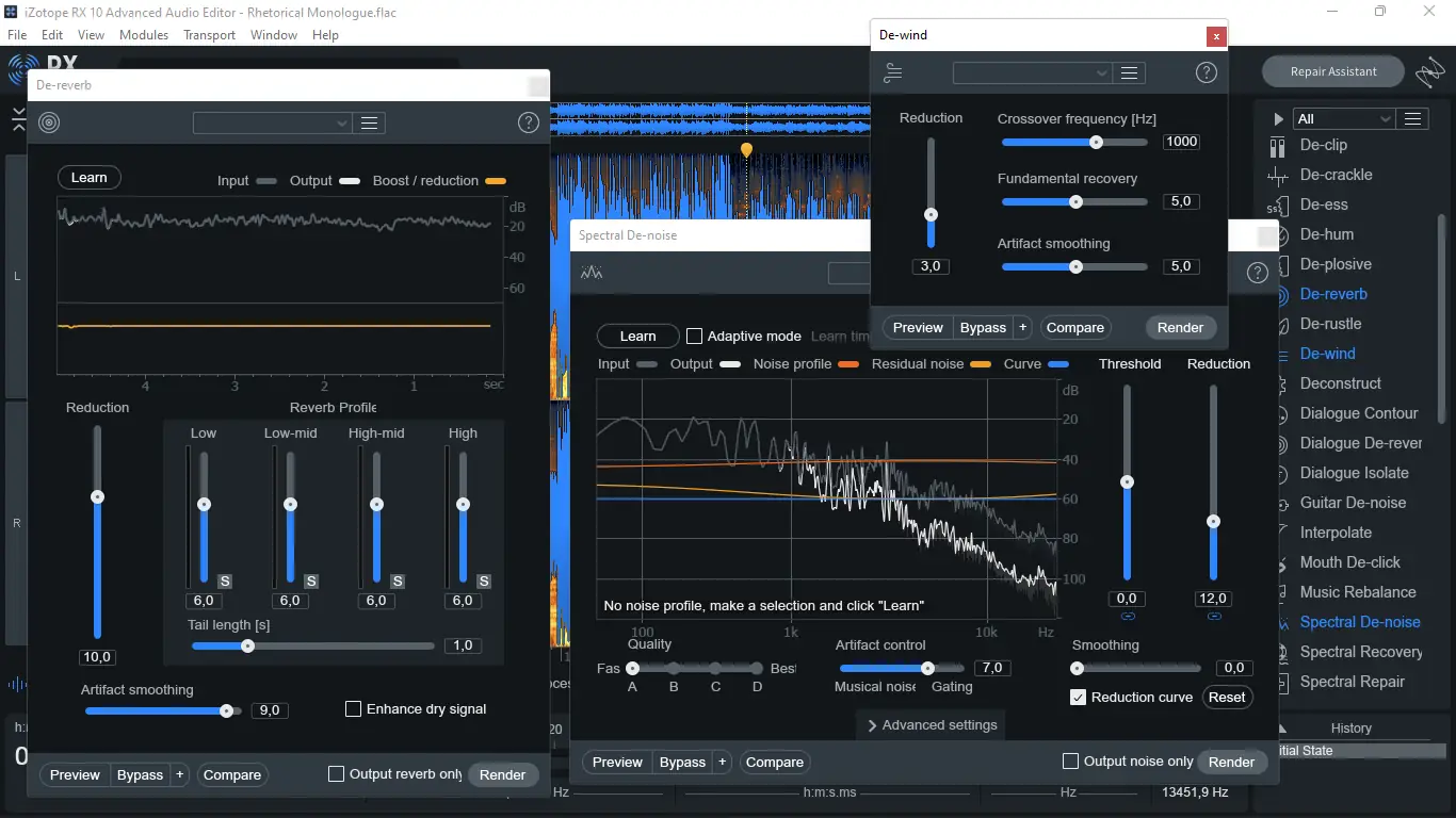 Программа представляет собой комплексный аудиоредактор, ориентированный на решение сложных задач в области звукового дизайна и восстановления. Благодаря продвинутой спектральной визуализации, пользователь может увидеть артефакты, шумы и искажения, которые невозможно обнаружить на слух. RX 10 предлагает не просто фильтрацию, а хирургически точное вмешательство в аудиосигнал, позволяя удалять или корректировать отдельные элементы без потери качества основного контента. Особое внимание уделено автоматизации процессов, что ускоряет работу даже при обработке большого объёма файлов.
