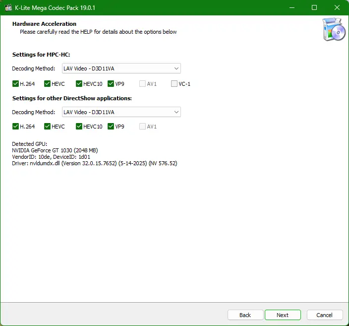 - Гибкая установка с возможностью выбора отдельных кодеков и фильтров.