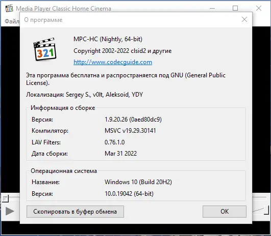 - В состав входят обновлённые версии LAV Filters, обеспечивающие высокую производительность при декодировании видео.