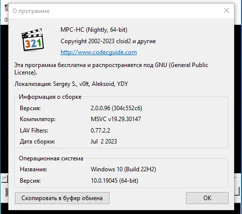 - Наличие встроенного проигрывателя MPC-HC с улучшенными возможностями воспроизведения