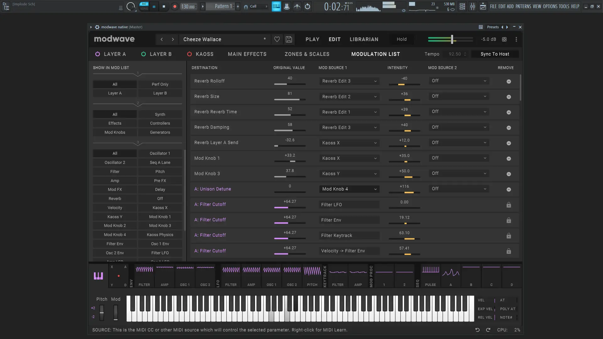 - Система модуляции с более чем 30 модификаторами для тонкой настройки тембра
