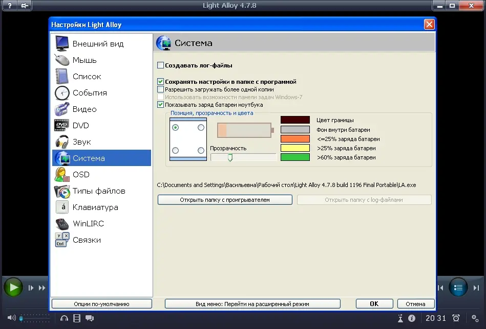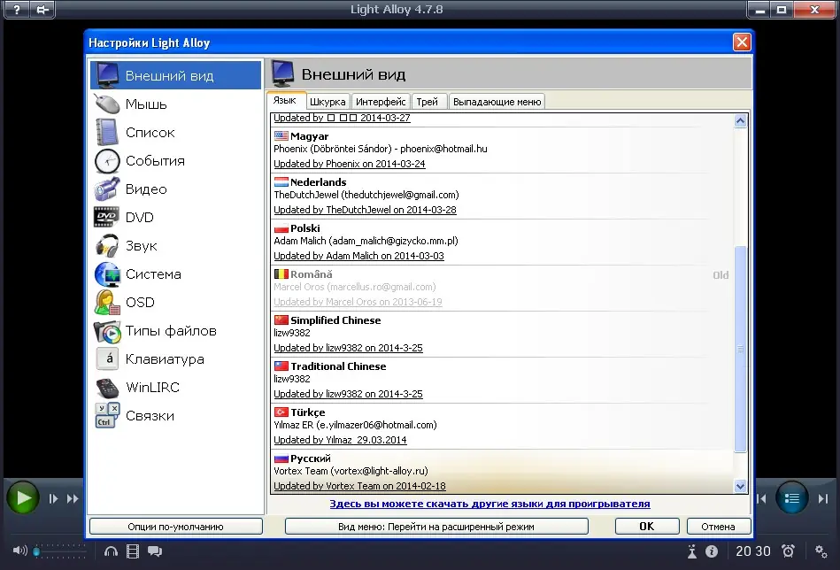 - Глубокие настройки видео, аудио и поведения проигрывателя.