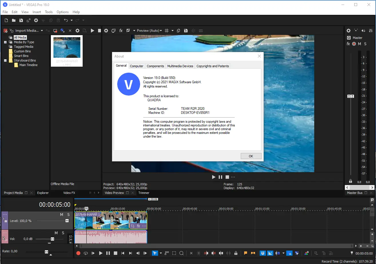 MAGIX Vegas Pro — профессиональный видеоредактор с поддержкой многодорожечного монтажа, цветокоррекции, работы с 360°-видео и аудиопроизводством. Программа поддерживает современные форматы, включая HEVC, RED RAW, Blackmagic RAW и XDCAM, а также предлагает инструменты на основе искусственного интеллекта для ускорения монтажа. Подходит для создания контента в разрешениях до 8K с гибкими настройками экспорта и рендерингом, ускоренным GPU.