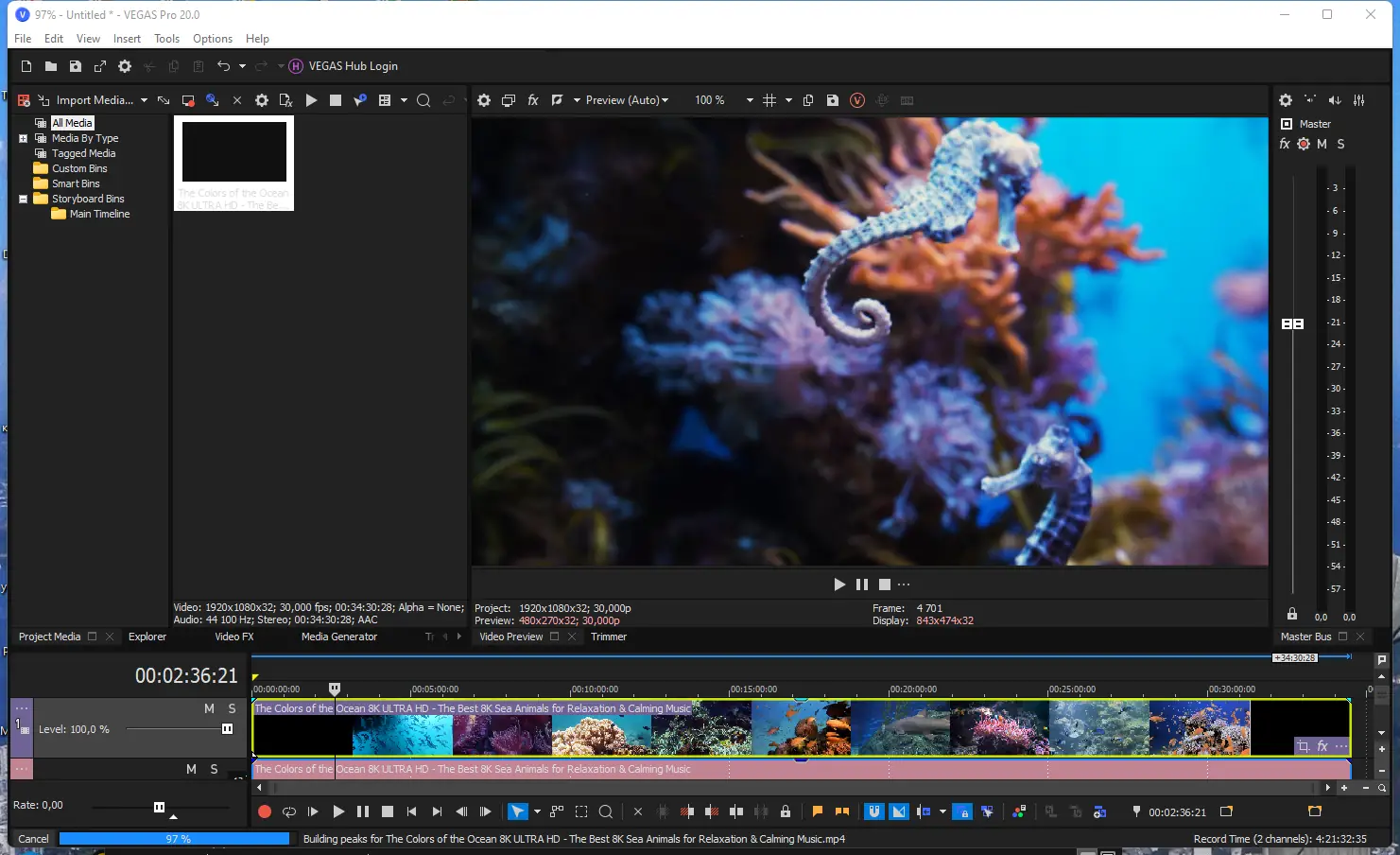 Интерфейс MAGIX Vegas Pro построен вокруг временной шкалы, что позволяет быстро импортировать медиа, выстраивать последовательности и применять эффекты. Начать работу можно с создания нового проекта, выбора разрешения и частоты кадров, после чего в проект добавляются видео- и аудиофайлы. Все элементы можно редактировать с точностью до кадра, используя инструменты разрезания, затухания и автоматической подгонки.