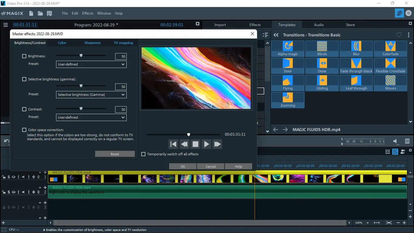 - Встроенные эффекты, включая NewBlue TotalFX — MAGIX Edition, предлагают более тысячи фильтров, переходов и пресетов для создания визуально насыщенных проектов.