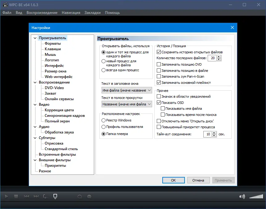 Описание Media Player Classic — Black Edition