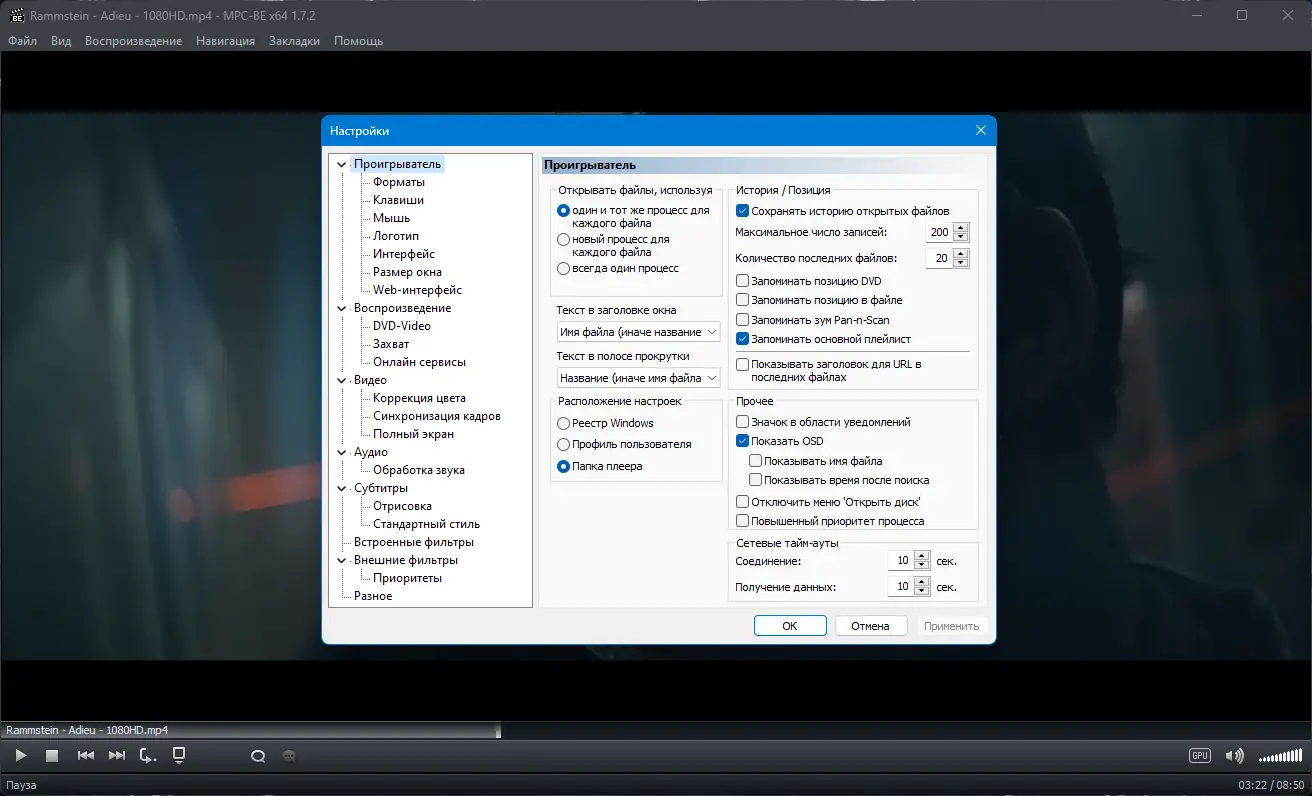 Использование Media Player Classic — Black Edition не требует специальных знаний. Достаточно запустить программу и перетащить нужный файл в окно проигрывателя или открыть его через меню «Файл». Все основные функции доступны через контекстное меню или настройки. Пользователь может настроить горячие клавиши, изменить масштаб изображения, включить вторую звуковую дорожку или загрузить внешние субтитры. Программа корректно работает с двумя мониторами, поддерживает управление через командную строку и позволяет сохранять пользовательские профили настроек. Для продвинутых пользователей доступны тонкие настройки фильтров, буферизации и декодирования.