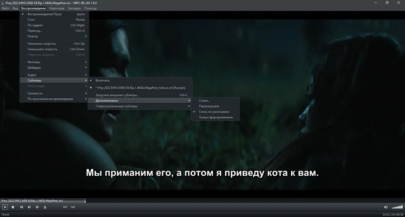 - Корректное отображение субтитров в форматах SRT, ASS, SSA, SUB и других