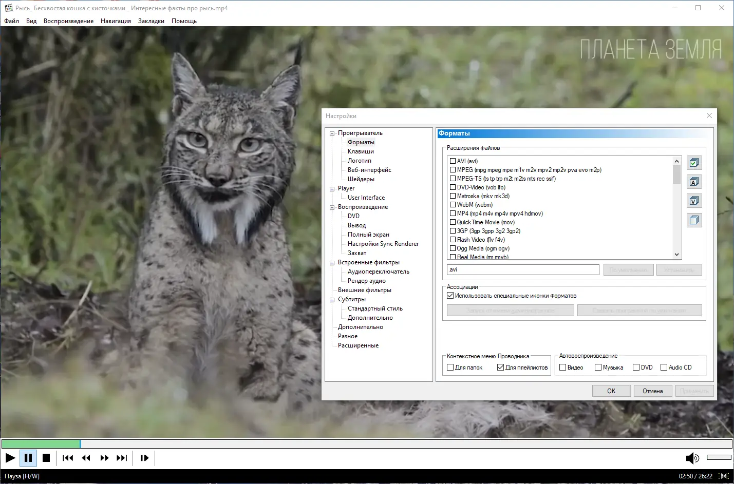 - Поддержка широкого спектра аудио и видеоформатов, включая редкие и устаревшие контейнеры.