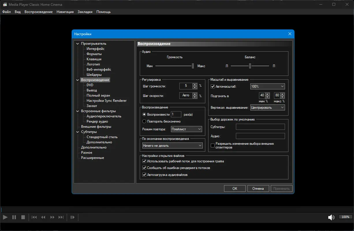 Использование Media Player Classic Home Cinema не вызывает сложностей даже у новичков. После запуска достаточно перетащить нужный файл в окно плеера или открыть его через меню «Файл». Интерфейс интуитивно понятен: основные элементы управления располагаются в контекстном меню, вызываемом правым кликом по видео. Через настройки можно настроить качество рендеринга, выбрать аудиодорожку, включить субтитры или изменить аспект-соотношение. Дополнительно доступна настройка горячих клавиш, выбор аудиовыхода и регулировка ускорения воспроизведения.