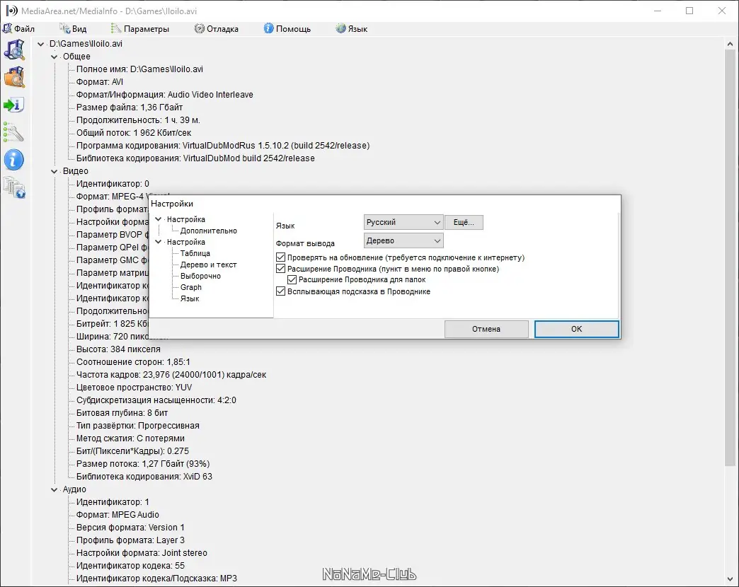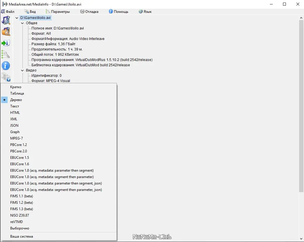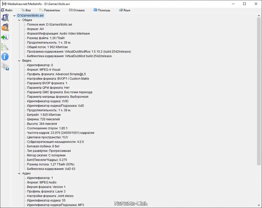 MediaInfo — это бесплатное приложение с открытым исходным кодом, разработанное для анализа мультимедийных файлов. Оно поддерживает широкий спектр форматов, включая MKV, AVI, MP4, WAV, OGG и многие другие. Программа отображает данные о видео, аудио, субтитрах и общей структуре файла, что делает её незаменимой при работе с медиаконтентом. Интерфейс прост и интуитивно понятен, а инструменты позволяют глубоко изучить любой файл.