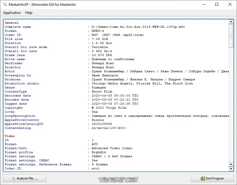 MediaInfoXP — это компактное приложение с открытым исходным кодом, предназначенное для анализа мультимедийных файлов. Программа предоставляет детальную информацию о параметрах видео и аудио, включая кодеки, битрейт, разрешение, длительность и другие технические характеристики. Будучи портативным решением, она не требует установки и может быть запущена с любого носителя.