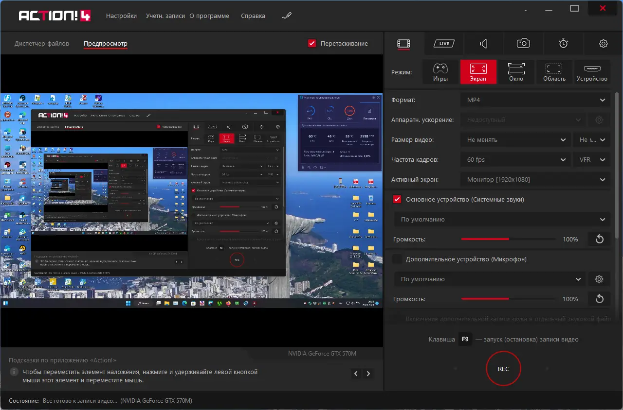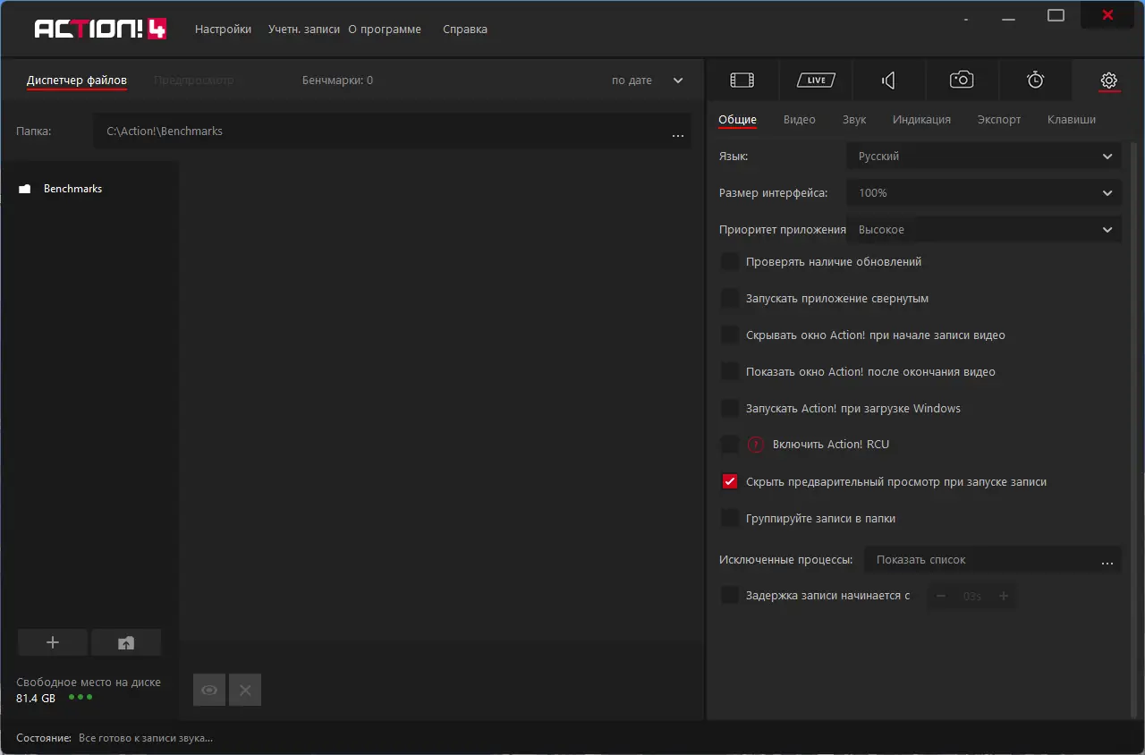 Mirillis Action предоставляет пользователям широкий функционал для записи экрана с акцентом на производительность и качество. Программа способна фиксировать игровой процесс с частотой до 120 кадров в секунду, что особенно важно для динамичных проектов, где каждое движение имеет значение. Благодаря эффективному движку, нагрузка на центральный и графический процессор остаётся низкой, что позволяет одновременно играть и записывать видео без просадок в FPS. Файлы сохраняются в современном формате MP4, который обеспечивает высокую степень сжатия без заметной потери качества.