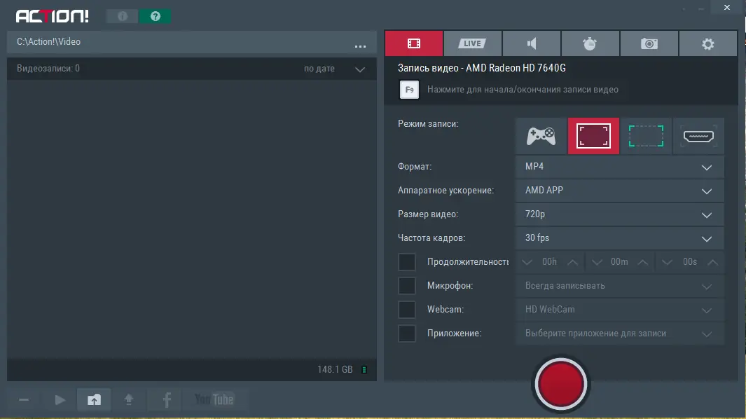 - Запись видео в высоком разрешении с поддержкой HD и Full HD