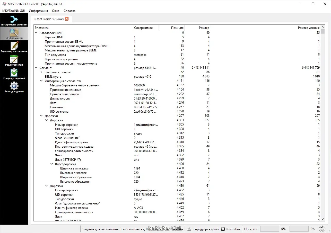 MKVToolNix — это универсальный набор инструментов для создания, редактирования и анализа файлов в формате Matroska (MKV). Программа позволяет объединять, разделять и модифицировать видео, аудиодорожки и субтитры с высокой точностью и скоростью. Поддержка множества форматов и интуитивный интерфейс делают её незаменимым решением для работы с мультимедиа.