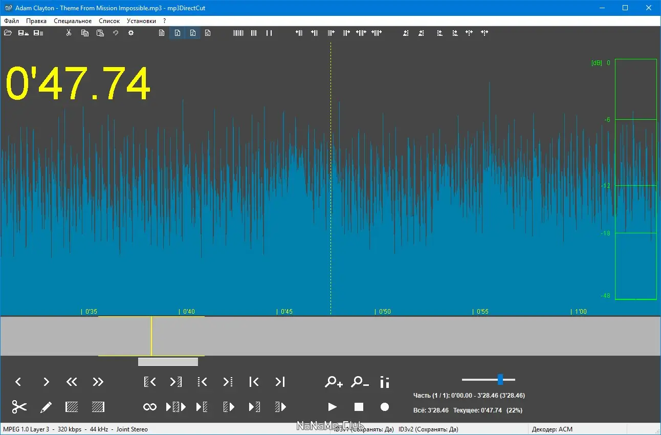 - Быстрая визуализация и точная навигация по аудиодорожке.