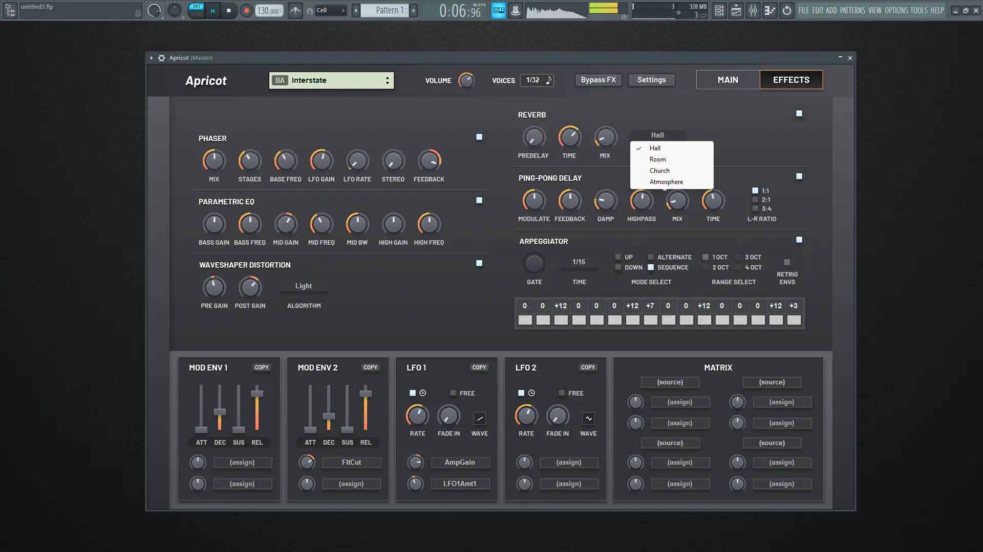 Система управления модуляцией позволяет быстро назначать источники на любые параметры, визуально отслеживая влияние через интерактивные элементы интерфейса.