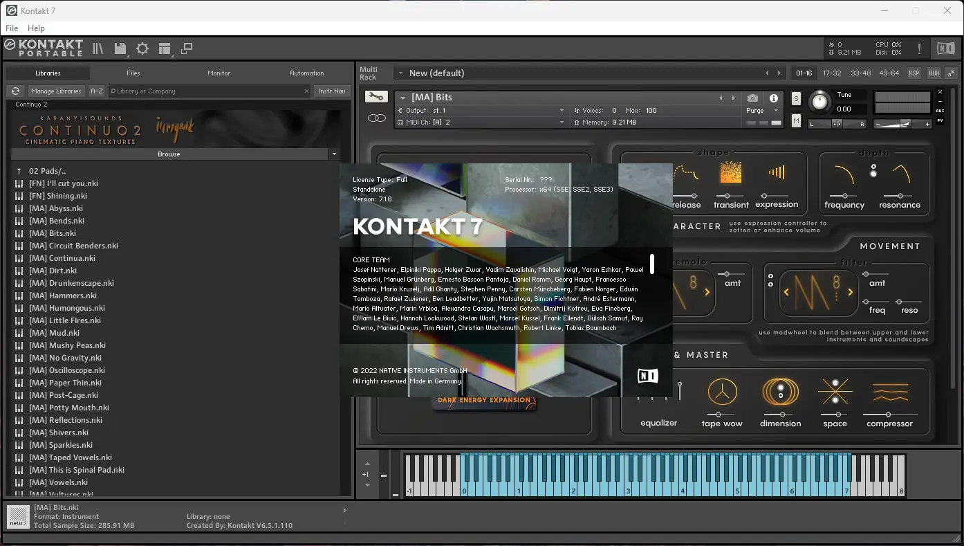 - Поддержка тысяч сторонних библиотек и полная совместимость с форматом NKS через соответствующие устройства, такие как maschine и kontrol.