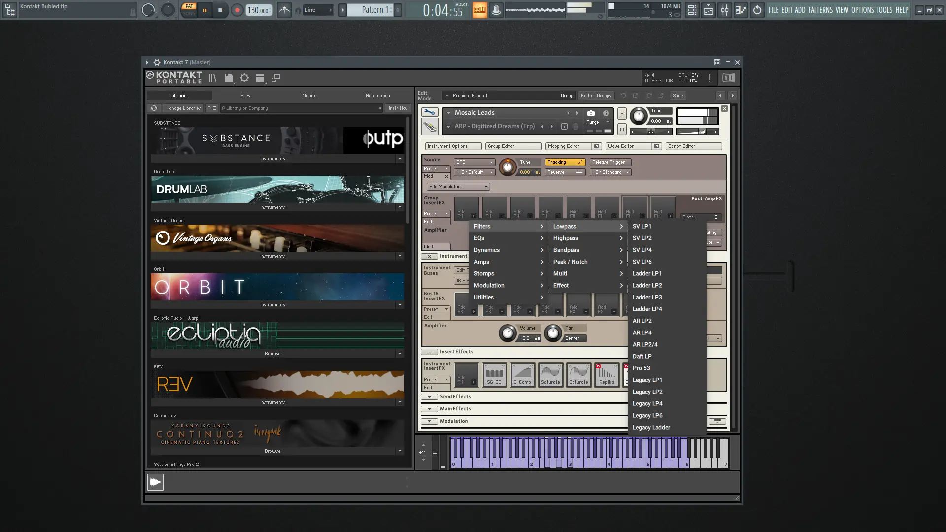 Работа с Native Instruments — Kontakt начинается с загрузки инструмента через встроенный браузер, где можно фильтровать пресеты по категориям, тегам или пользовательским меткам. В редакторе зон осуществляется распределение сэмплов по клавиатуре, настройка ключевых параметров, таких как тюнинг, огибающие и фильтры. Для глубокой настройки доступен режим мониторинга, отображающий структуру инструмента, группы и зоны. Через модульные окна можно подключать эффекты, настраивать маршрутизацию аудиовыходов и создавать сложные сценарии модуляции. Программирование на KSP позволяет автоматизировать поведение инструмента, добавляя интерактивные элементы управления. Для интеграции в DAW используется VST3, AU или AAX-версия, а портативная сборка может быть добавлена через ручное сканирование плагинов.