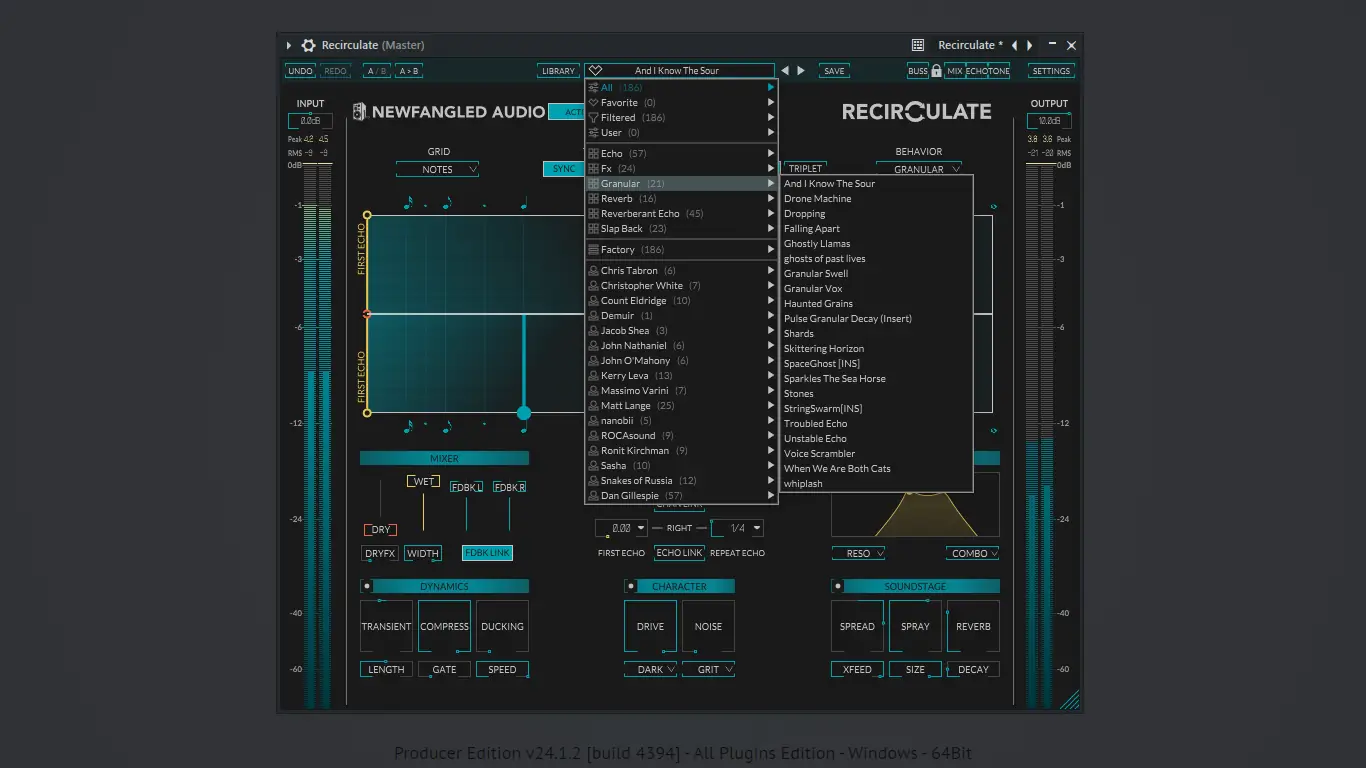 Recirculate от Newfangled Audio — это мощный и интуитивный плагин задержки, разработанный для создания глубоких, ритмически точных и выразительных эхо-эффектов. Благодаря продуманной архитектуре и широким возможностям настройки, он легко встраивается в любой музыкальный проект, позволяя добавлять объём, движение и характер звучанию. Программа поддерживает формат vst и совместима с большинством цифровых аудиостанций.