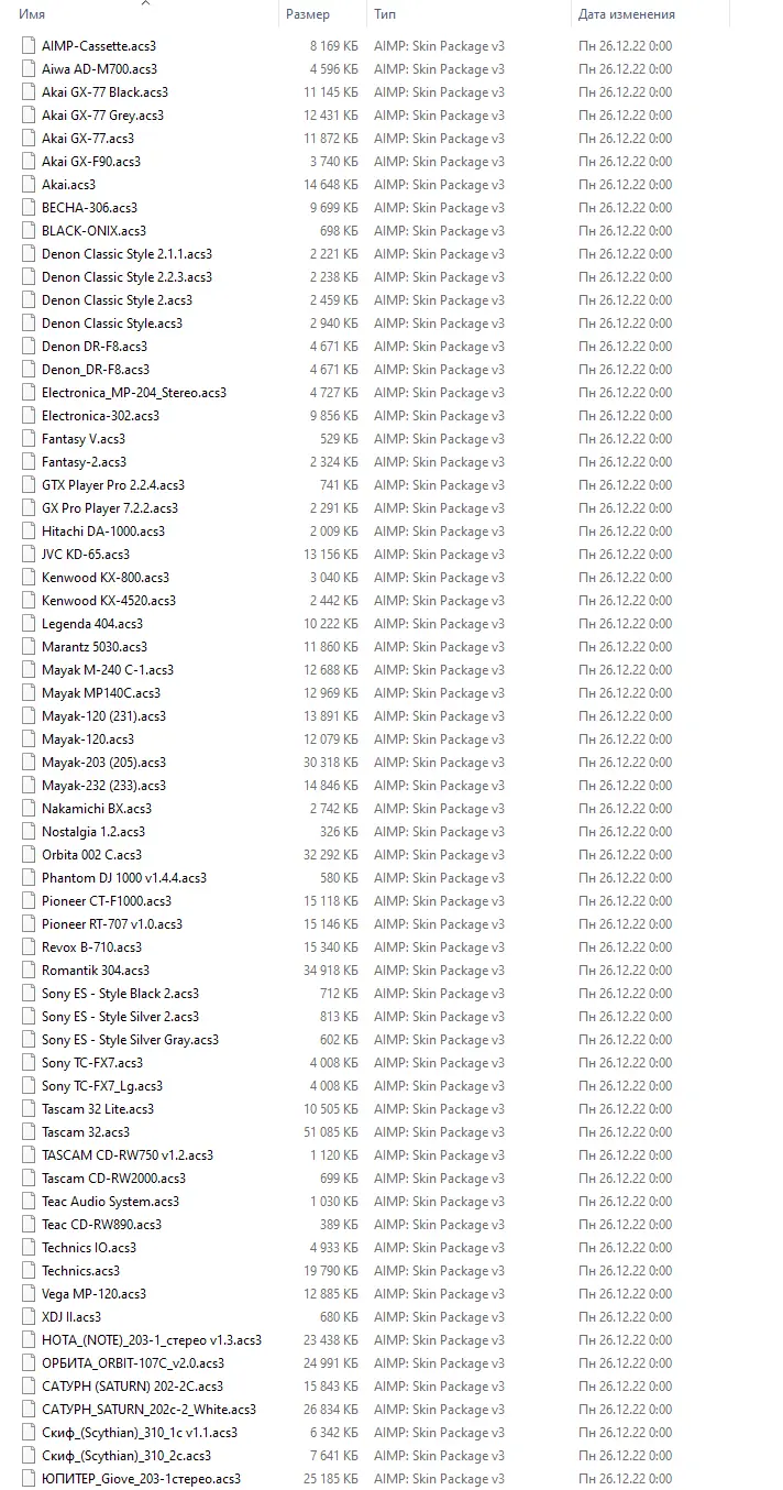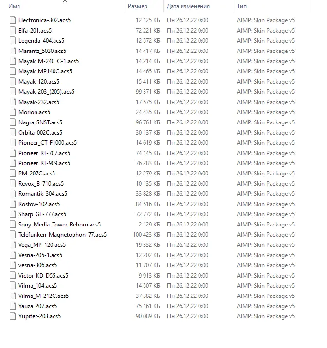 - Лёгкая версия содержит только скины формата .acs5 для AIMP5 и выше