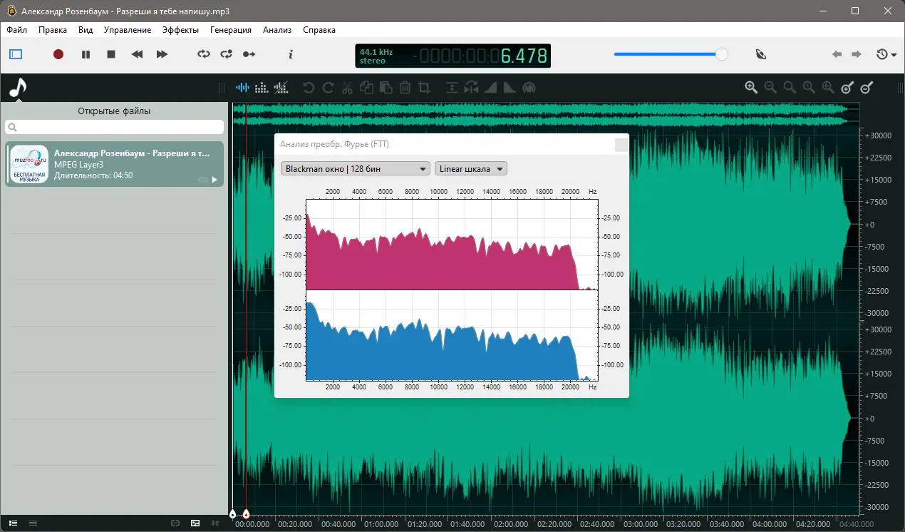 - Полноценные спектрограммы с динамическим обновлением параметров отображения.