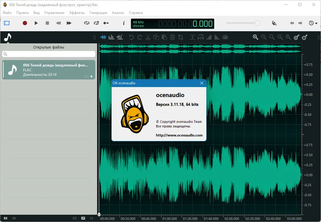 Ocenaudio — это бесплатный аудиоредактор с интуитивным интерфейсом и широким набором инструментов для обработки звука. Программа поддерживает работу с различными форматами аудиофайлов и предлагает функции, подходящие как для новичков, так и для опытных пользователей. Благодаря кроссплатформенности, она работает на Windows, macOS и Linux, обеспечивая стабильность и высокую скорость обработки даже с большими файлами.