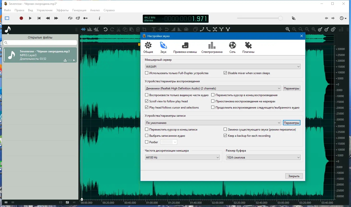 - Отображение спектрограммы с настройкой параметров в реальном времени