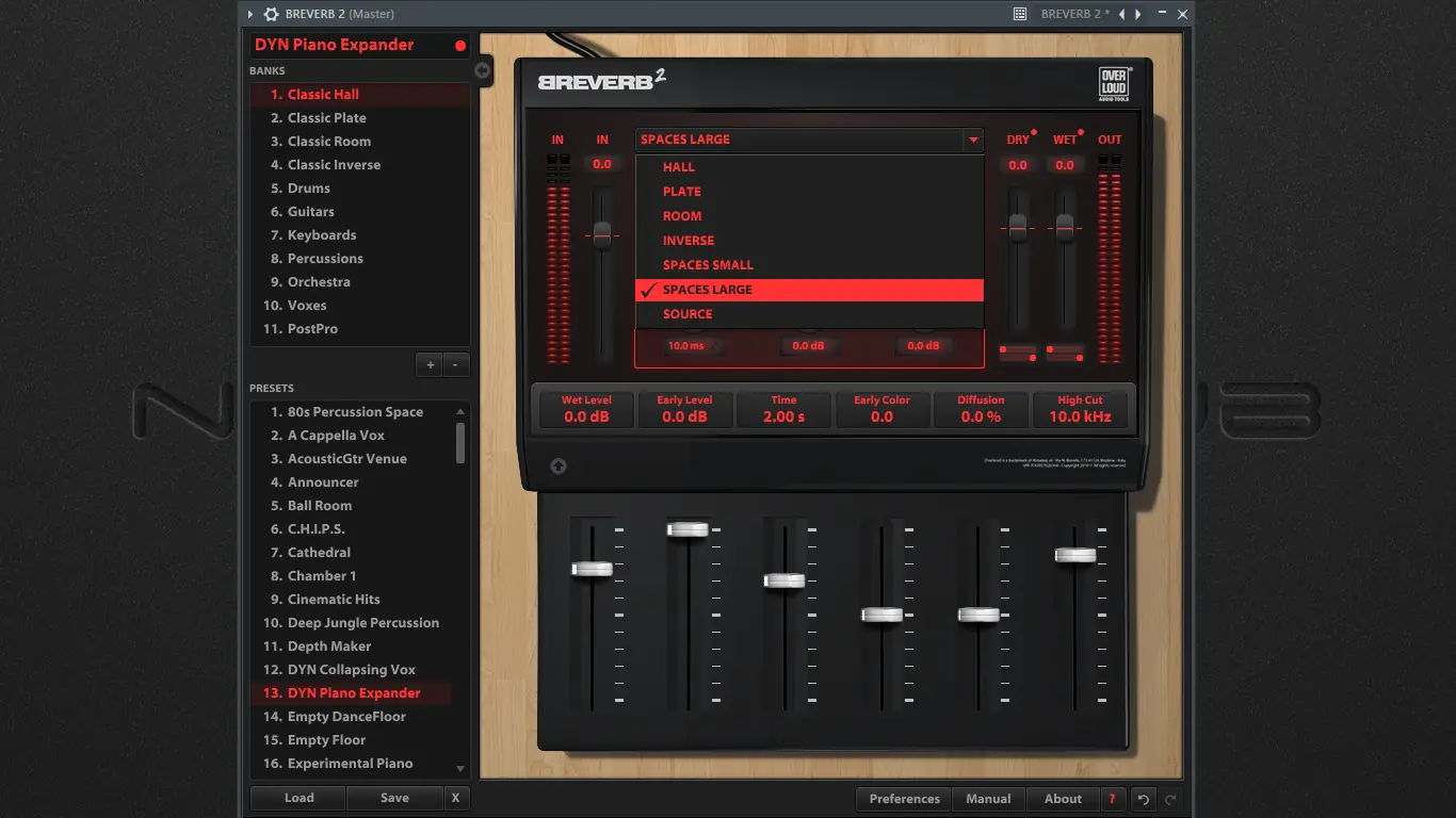 Использование Overloud BREVERB 2 интуитивно понятно благодаря продуманному графическому интерфейсу и логичной структуре параметров. После установки плагина в DAW его можно загрузить на любой трек, где требуется эффект реверберации. Основные настройки включают выбор алгоритма, регулировку времени затухания, плотности отражений, уровня ранних отражений и общего тона. Дополнительные секции, такие как EQ и Nonlinear, позволяют детально корректировать частотный отклик и динамическое поведение реверберации. Для быстрого старта рекомендуется использовать пресеты, оптимизированные под конкретные инструменты — от ударных и вокала до акустических гитар и синтезаторов. Режим автоматизации дает возможность изменять позицию источника в режиме реального времени, что особенно актуально при работе с пространственным звуком.
