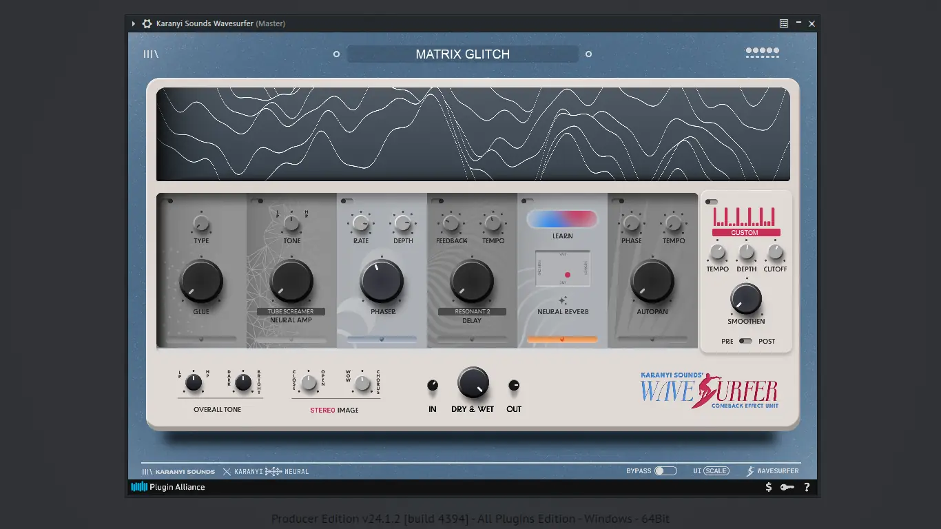 Wavesufer представляет собой передовой инструмент в категории аудиоредакторов, ориентированный на создание выразительных и насыщенных звуков. Основа его архитектуры — модульная система, в которой пользователь может комбинировать различные эффекты, подключая их в любой последовательности. Семь основных модулей включают задержку, фазер, автопанорамирование, компрессор Glue, нейросетевой ревербератор, фильтр с секвенсором и моделирование аналогового усилителя. Такая гибкость открывает широкие возможности для экспериментов с тембром, динамикой и пространственным расположением звука.