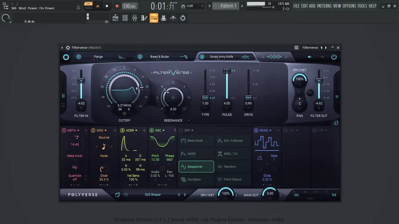 Filterverse оптимизирован для модуляции на частоте аудиосигнала, что позволяет создавать сложные гармоники и нелинейные эффекты, недоступные в стандартных фильтрах.