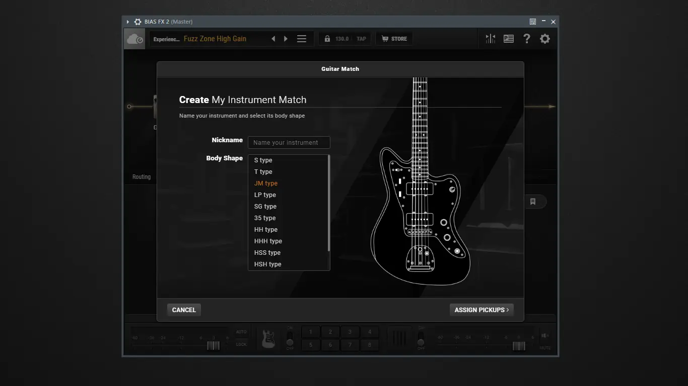 - Поддержка эмуляции разных типов гитар через Guitar Match