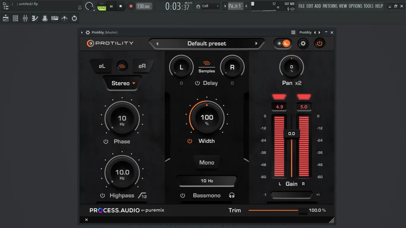 Использование Process Audio начинается с установки плагина в DAW. После загрузки интерфейс отображает все основные элементы управления: регуляторы усиления, триммеры, панорамные контроллеры и фильтры. Пользователь может настроить уровень сигнала, отфильтровать нежелательные низкие частоты с помощью high-pass фильтра и визуально оценить баланс каналов по встроенным метрам. Для решения фазовых конфликтов предусмотрен переключатель фазы и функция её вращения с шагом, привязанным к частотам. Режим коррекции времени с помощью выборочной задержки позволяет добиться идеальной фазовой согласованности между дорожками.