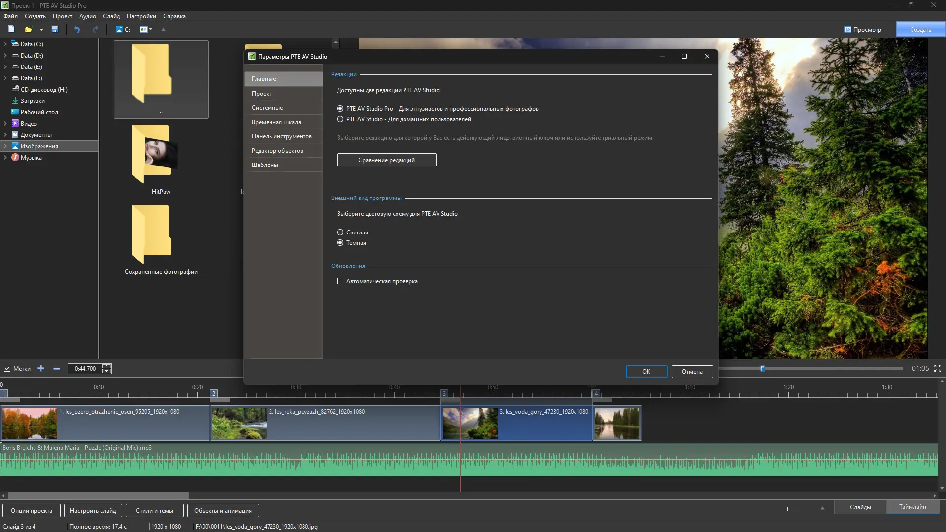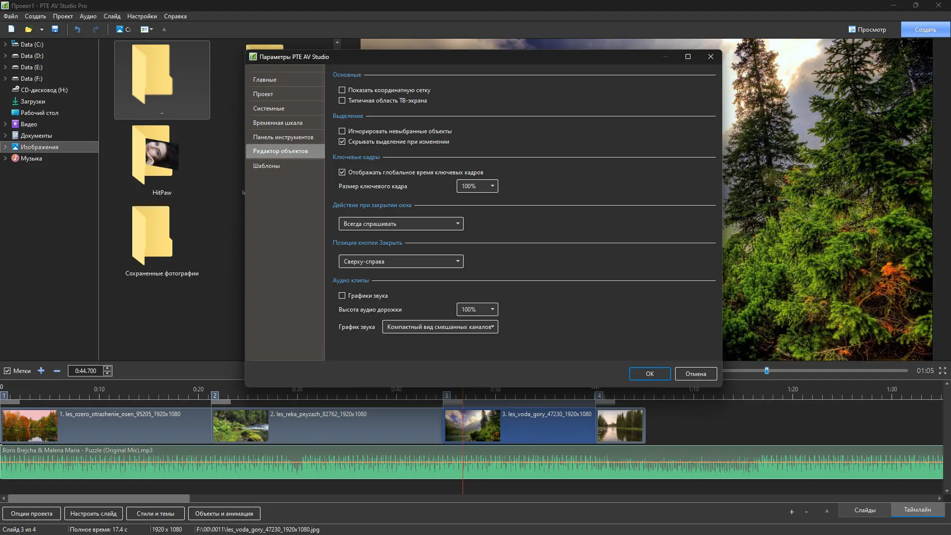PTE AV Studio — это мощное программное решение для создания профессиональных слайд-шоу из фотографий с возможностью добавления музыки, текстовых и звуковых комментариев. Программа позволяет экспортировать проекты в виде самозапускаемых exe-файлов, видео высокого качества или файлов для DVD. Поддержка современных форматов и широкие настройки анимации делают её удобным инструментом для создания мультимедийных презентаций.