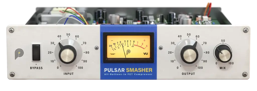 - Pulsar Smasher — это модифицированная версия схемы Urei 1176, настроенная на агрессивное сжатие и насыщенные переходные процессы.