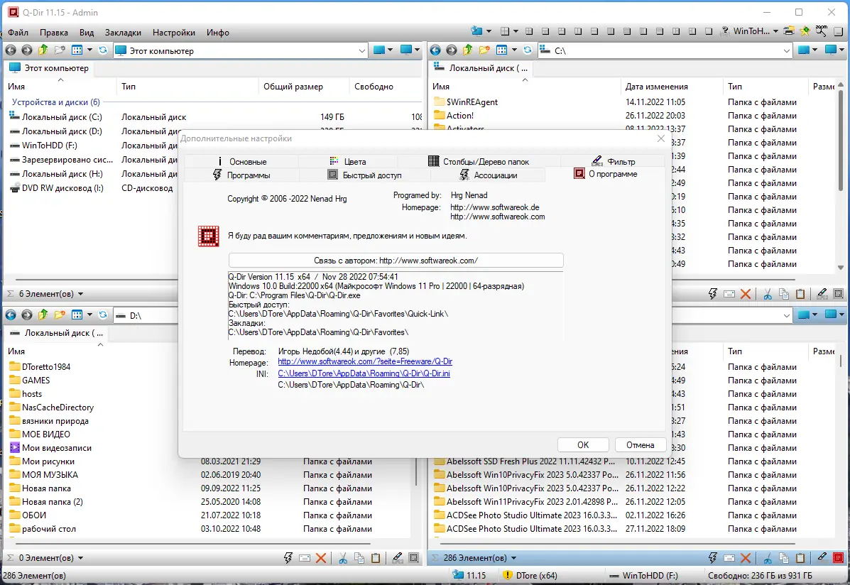 Q-Dir совмещает простоту интерфейса с глубокой функциональностью, оставаясь при этом легковесной и быстрой в работе.