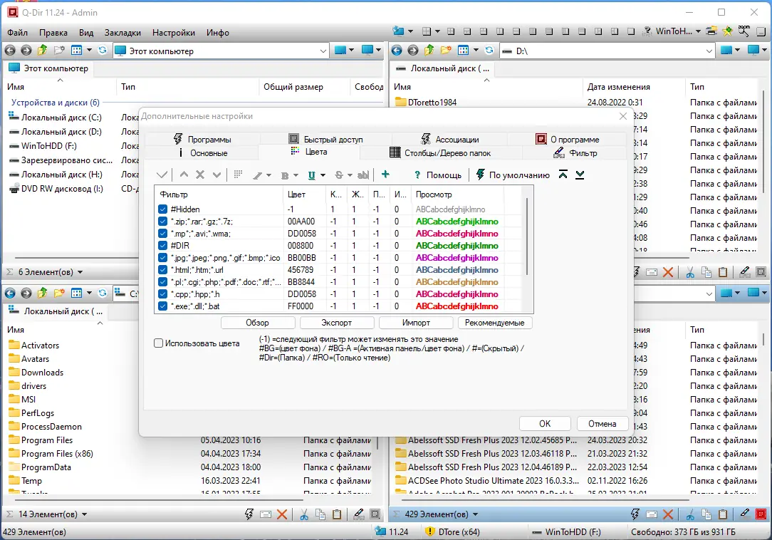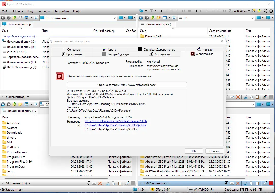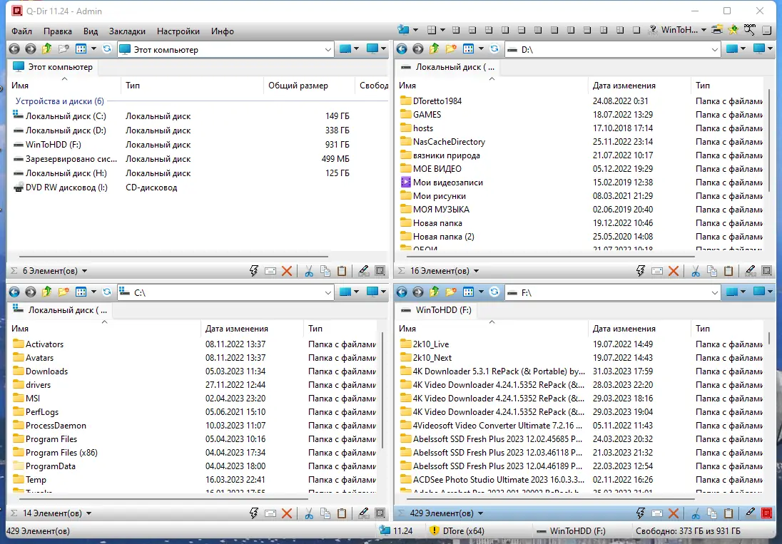 Q-Dir — это компактный, но мощный файловый менеджер, созданный для пользователей, ценящих скорость и удобство доступа к файловой системе. Его отличительной чертой является четырёхпанельный интерфейс, позволяющий одновременно просматривать содержимое разных каталогов. Это особенно полезно при копировании, сравнении или сортировке файлов между дисками, папками и сетевыми ресурсами. Интерфейс легко адаптируется под нужды пользователя — можно переключаться между одним, двумя или четырьмя окнами, а также использовать вкладки для организации рабочего пространства.