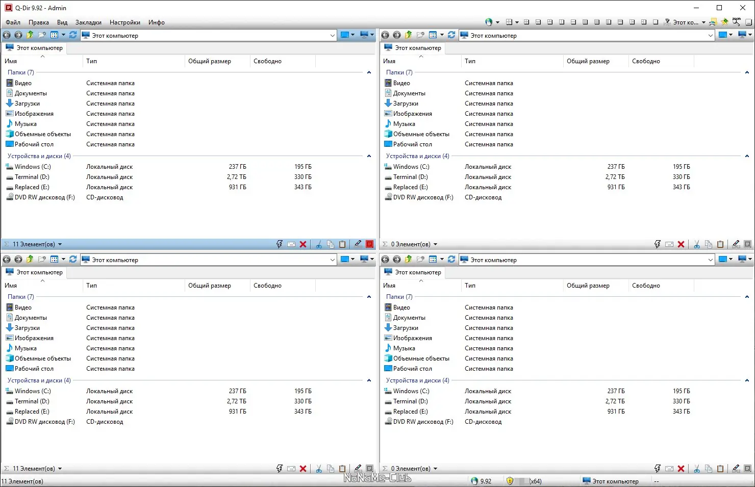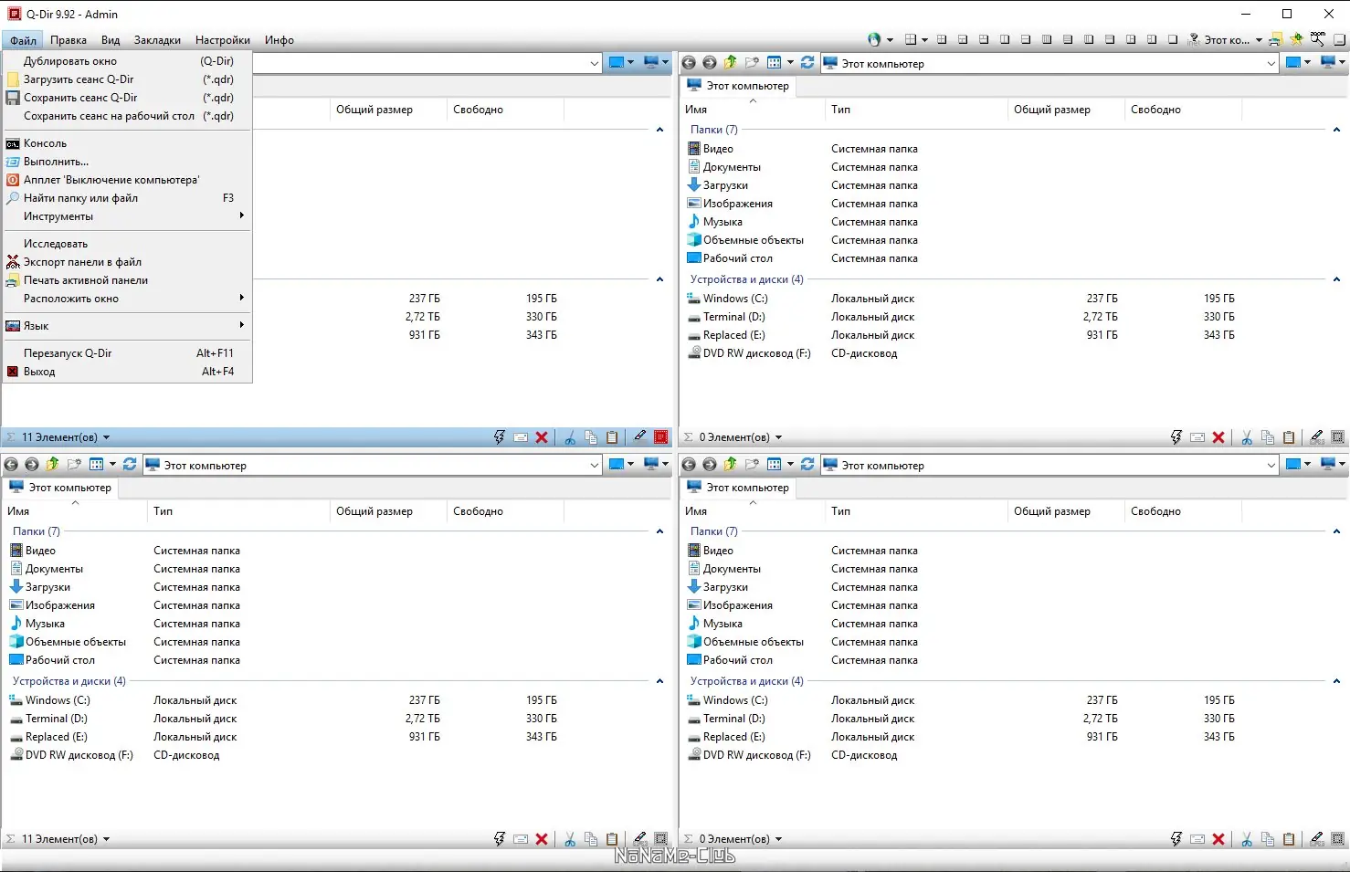Файловый менеджер Q-Dir с четырехпанельным интерфейсом обеспечивает эффективную работу с папками и файлами, поддерживает архивы, сетевые подключения и быстрый доступ к часто используемым директориям. Программа совместима с портативными носителями, имеет режим предварительного просмотра и широкие настройки отображения содержимого.