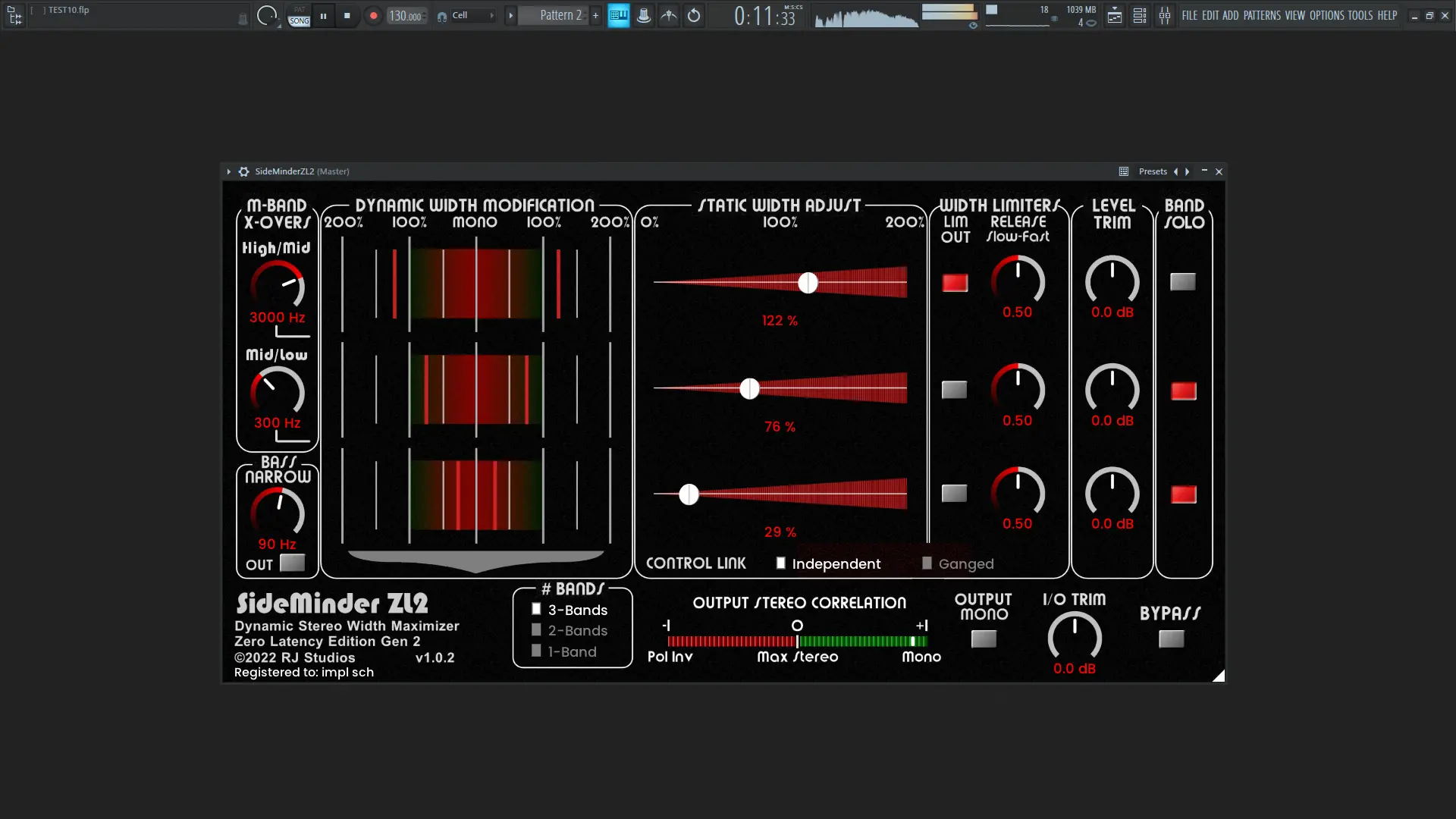 - Точное управление стереошириной на разных частотных диапазонах.