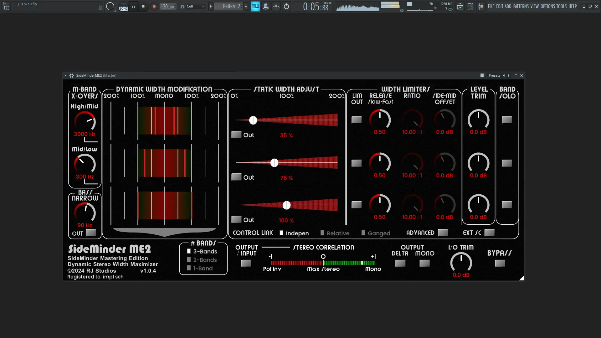 - SideMinder ME2 предлагает трёхполосное управление шириной стереобазы и расширенные настройки Bass Narrow для точной коррекции низких частот.