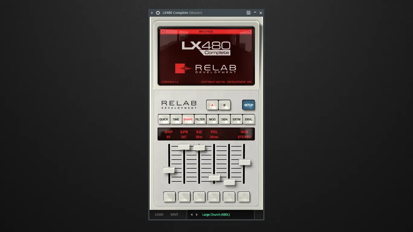 ReLab LX480 — это цифровой ревербератор, разработанный на основе легендарного Lexicon 480L, который долгое время считался эталоном в области пространственного звучания. Программа предлагает высокоточную алгоритмическую реконструкцию оригинальных режимов: Random Hall, Hall, Room / Plate, Ambience и Twin Delays. Каждый из них передаёт характерную глубину, насыщенность и прозрачность, присущие аппаратной версии. Современные технологии позволили не просто скопировать поведение устройства, но и улучшить его, повысив плотность реверберации и расширив возможности обработки сигнала.