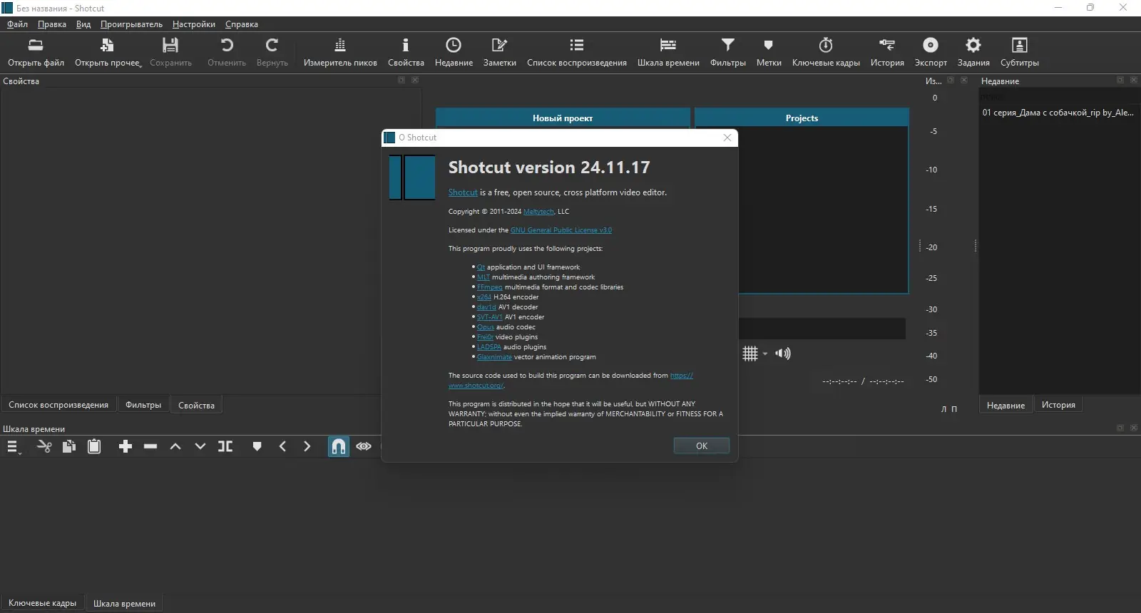 Shotcut представляет собой универсальное решение для обработки видео, сочетающее в себе функциональность профессионального редактора и простоту в использовании. Программа поддерживает множество аудио- и видеоформатов, включая редкие и устаревшие, что делает её незаменимой при работе с разнородными файлами. Пользователи могут легко импортировать материалы, редактировать их на таймлайне, применять фильтры и экспортировать в нужный формат без необходимости дополнительной конвертации.