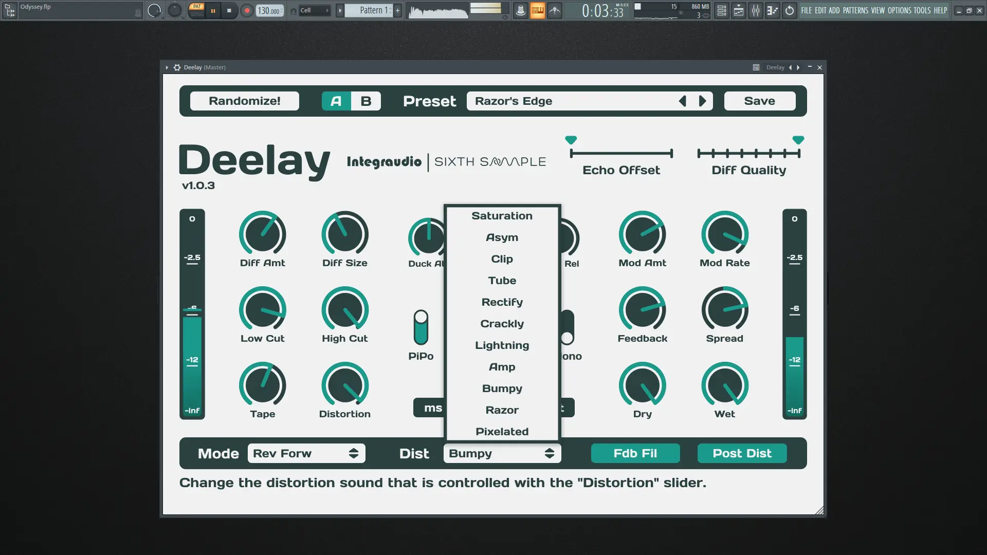 - Многоступенчатое искажение с различными типами: Tube, Tape, Pixelated и другие, вносящие характерные аналоговые артефакты